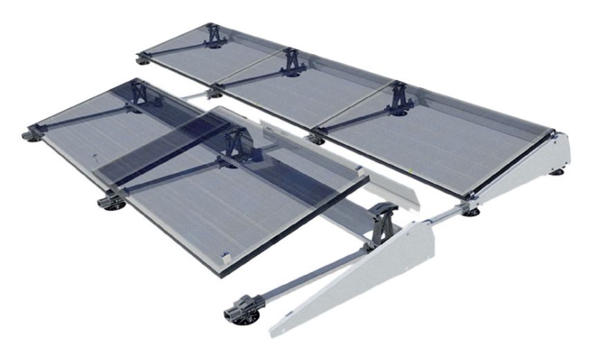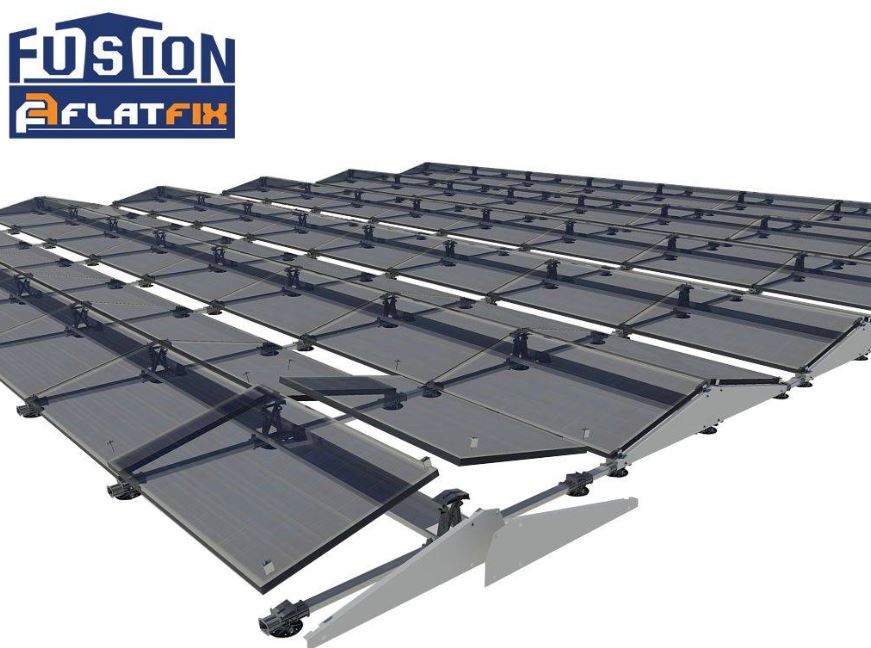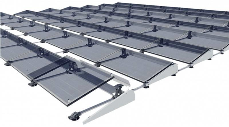 Het systeem is geschikt voor alle platte daken. Het is niet nodig om te boren in de dakconstructie. De zonnepanelen blijven op hun plek liggen door het montagesysteem te verzwaren met extra ballast.
