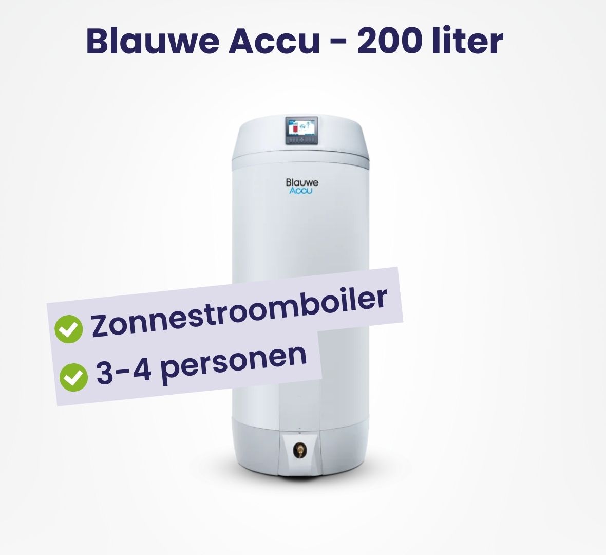 Overweegt u een Blauwe Accu Zonnestroomboiler, maar weet u niet precies hoeveel liter boiler past bij uw huishouden? Wij denken met u mee en voorzien u van deskundig advies. Vraag gerust een vrijblijvende offerte aan.