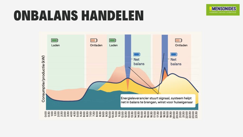Bij Mensonides helpen we u met een thuisbatterij die past bij uw stroomverbruik en opbrengst van uw zonnepanelen. Zeker met de afbouw van de salderingsregeling is het slim om meer van uw eigen zonnestroom zelf te gebruiken.