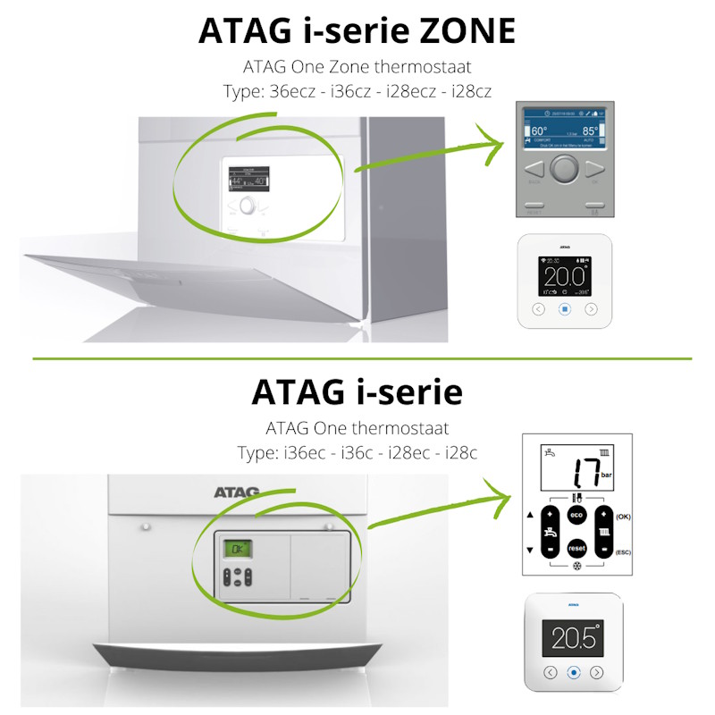 Tip: Hieronder staat een afbeelding hoe u het verschil kunt zien tussen een ATAG i-serie & ATAG i-serie Zone.