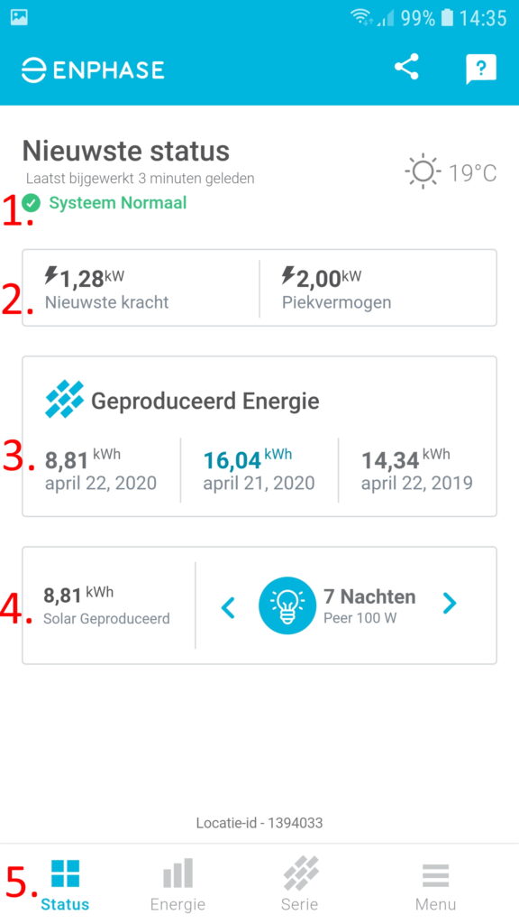 3. Apparaten: status van het Envoy kastje en de mirco-omvormers.