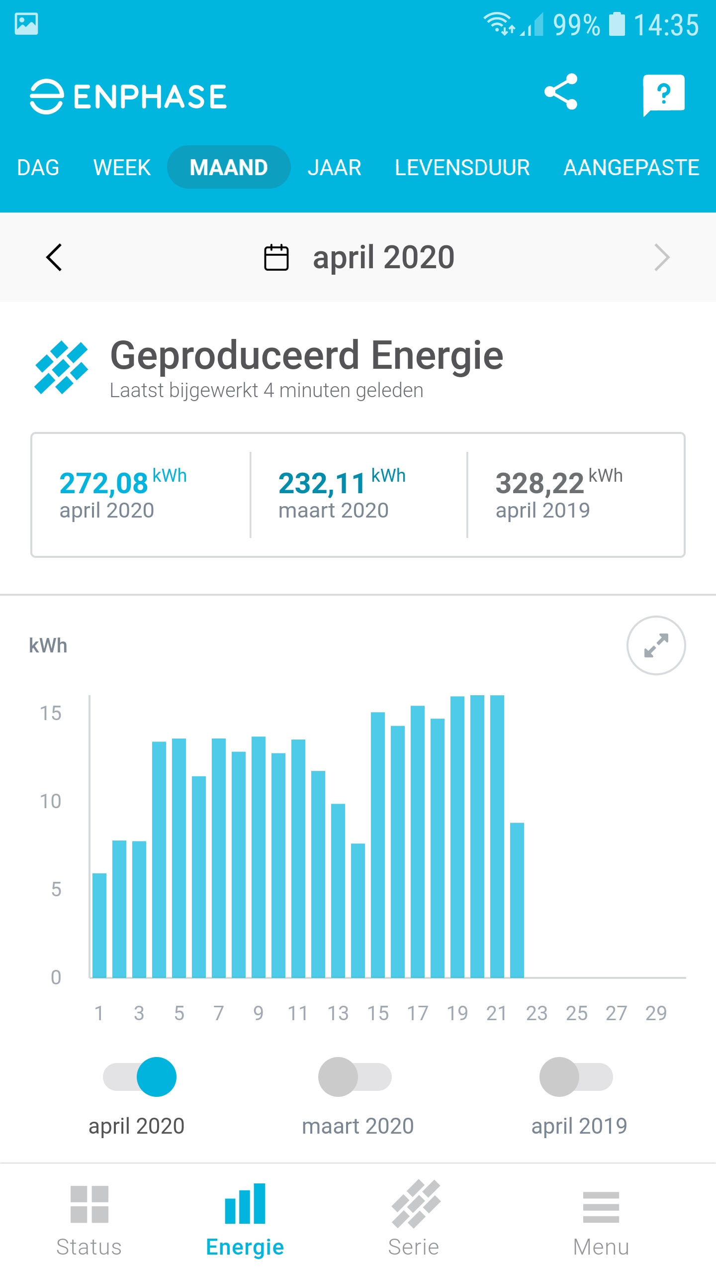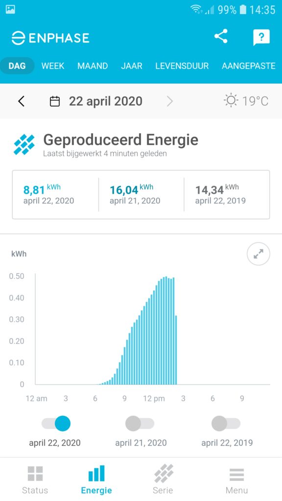 Ook kan het gedurende dag voorkomen dat er verschil zit in de opbrengst per paneel. Dit komt door vertraging in het doorsturen van de gegevens per paneel. Aan het einde van de dag zijn de gegevens het meest accuraat.