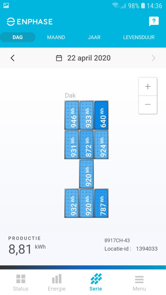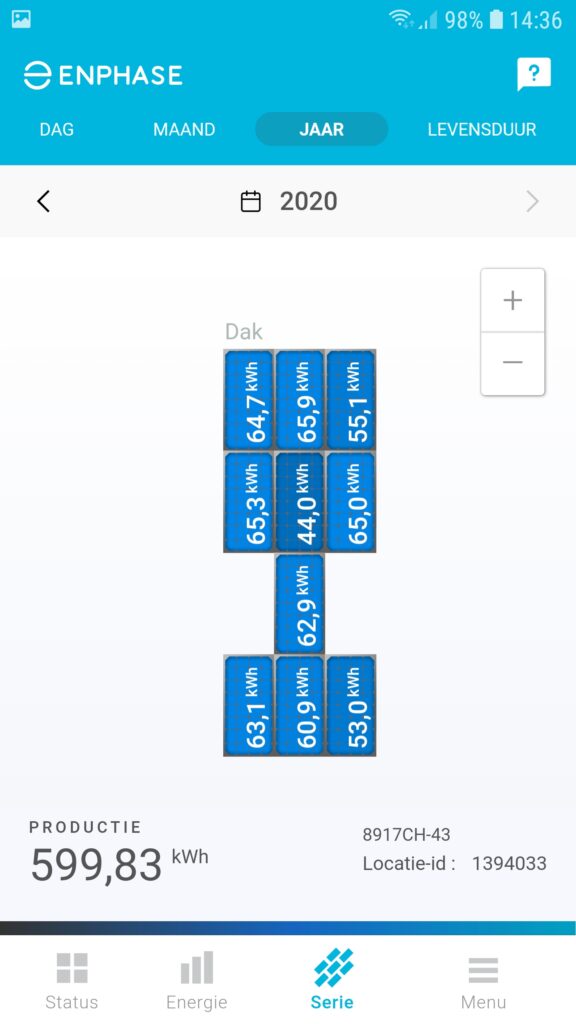 - Serie: inzicht in de opgewekte zonne-energie per paneel.