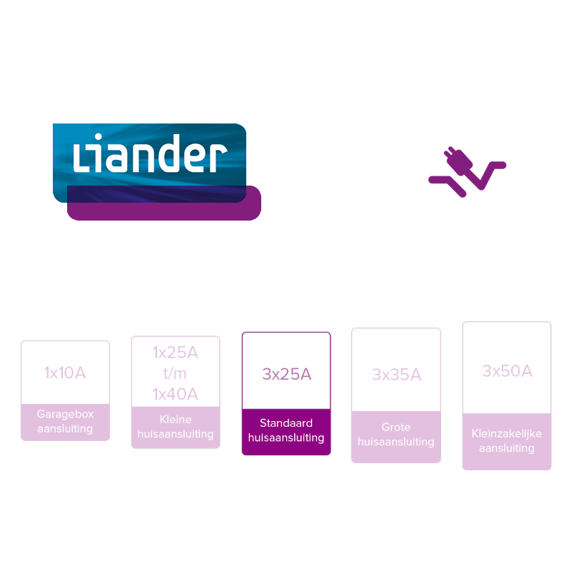 - Hoofdaansluiting noodzakelijk : 1-fase hoofdaansluiting (1x35A | 1x40A) & 3-fasen hoofdaansluiting.