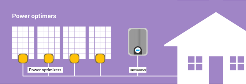 Bij een power-optimizer wordt ook elke zonnepaneel individueel geregeld door achter elke paneel een power optimizer te plaatsen. Echter wordt hier nog wel gebruik gemaakt van één centrale omvormer.