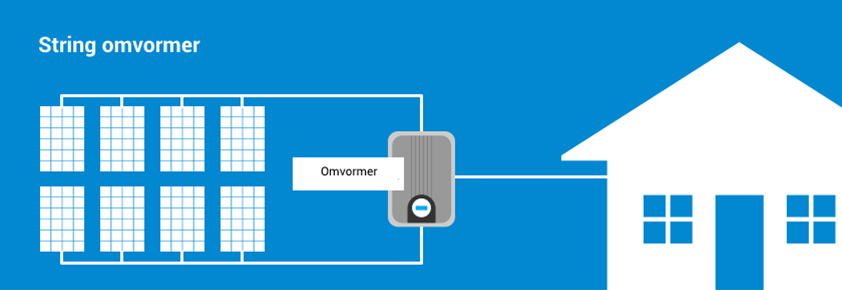 Bij een stringomvormer worden de zonnepanelen in een serie aan elkaar gekoppeld. Er wordt dus gebruik gemaakt van één omvormer voor de hele zonnepanelen installatie.