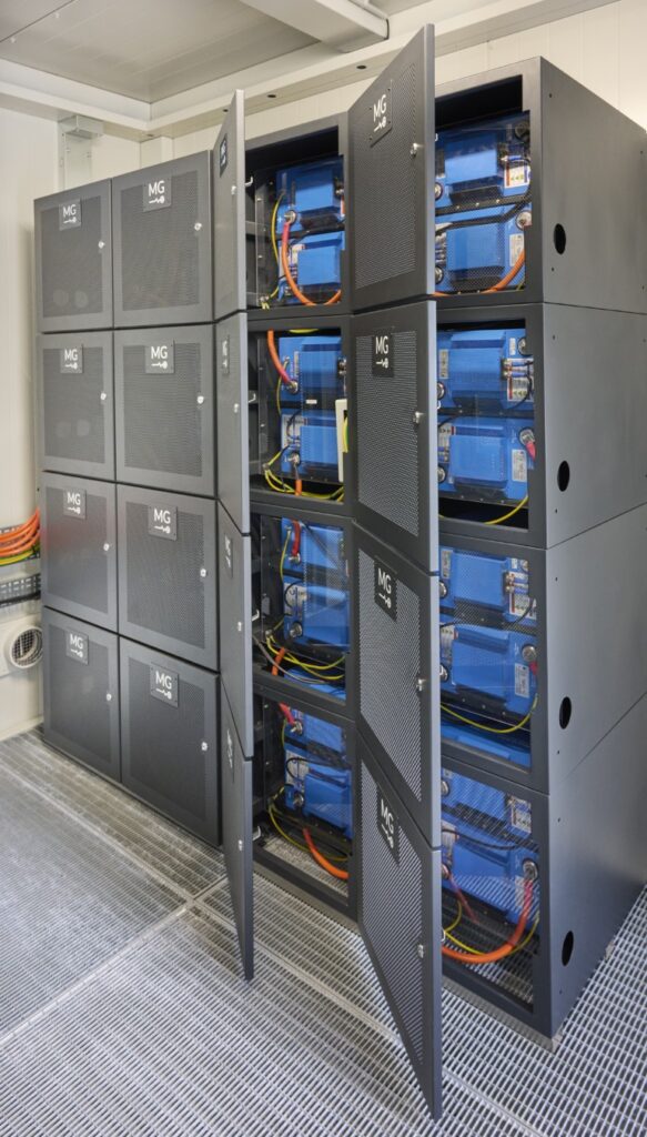 De MG-opslagsystemen gebruiken zogenoemde prismatische cellen, die worden beschouwd als de veiligste lithium-ioncellen. Het batterijbeheersysteem van MG bewaakt elke individuele cel voortdurend, wat betekent dat het hele systeem wordt gecontroleerd: als er iets abnormaals wordt gedetecteerd, schakelt het systeem automatisch naar een veilige toestand.