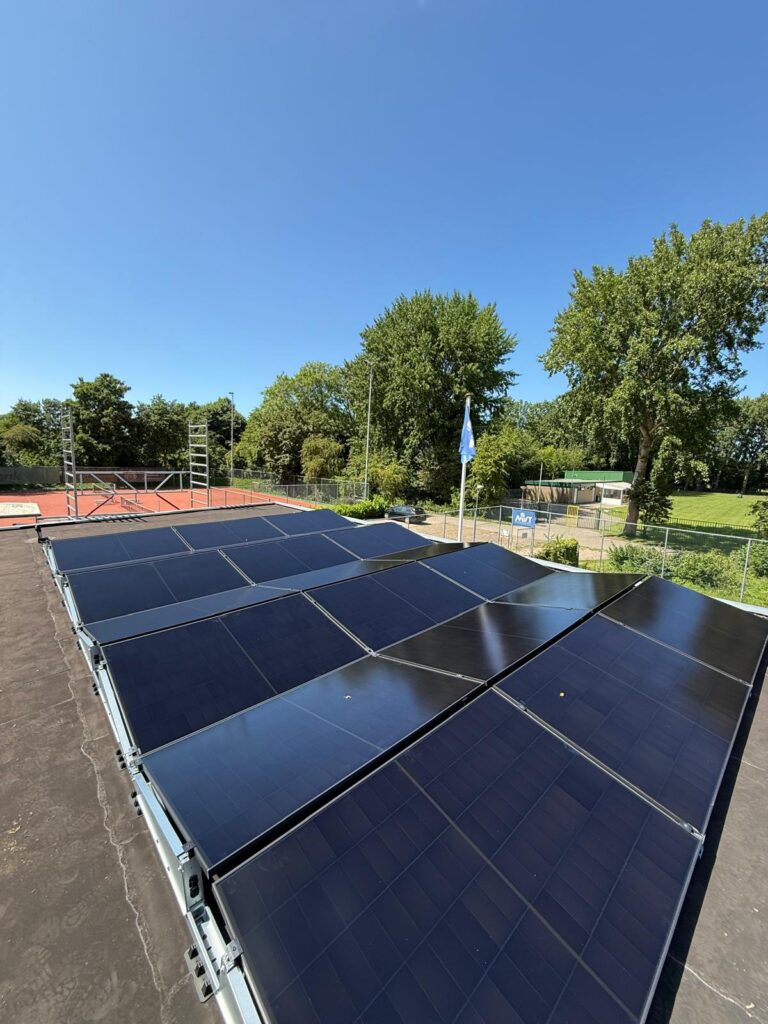 Bij Tennisvereniging Makkum hebben we een toekomstbestendig zonnestroomsysteem geïnstalleerd bestaande uit zonnepanelen en batterijen om ook zonnestroom in op te slaan. Zo wekt de vereniging zelf groene energie op en bewaart deze voor later gebruik.