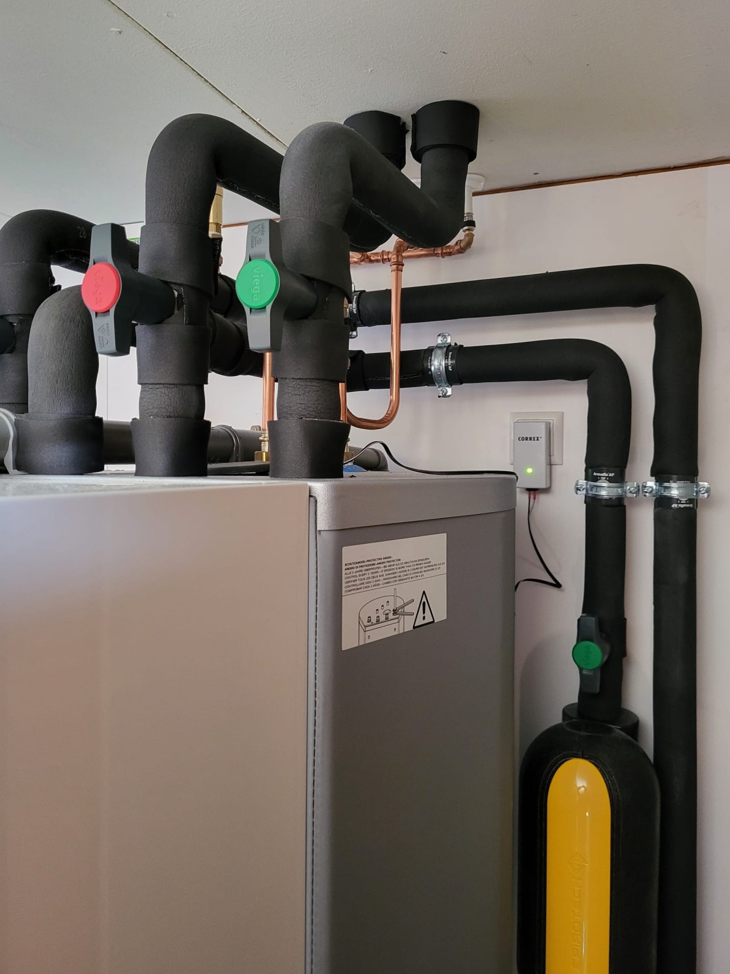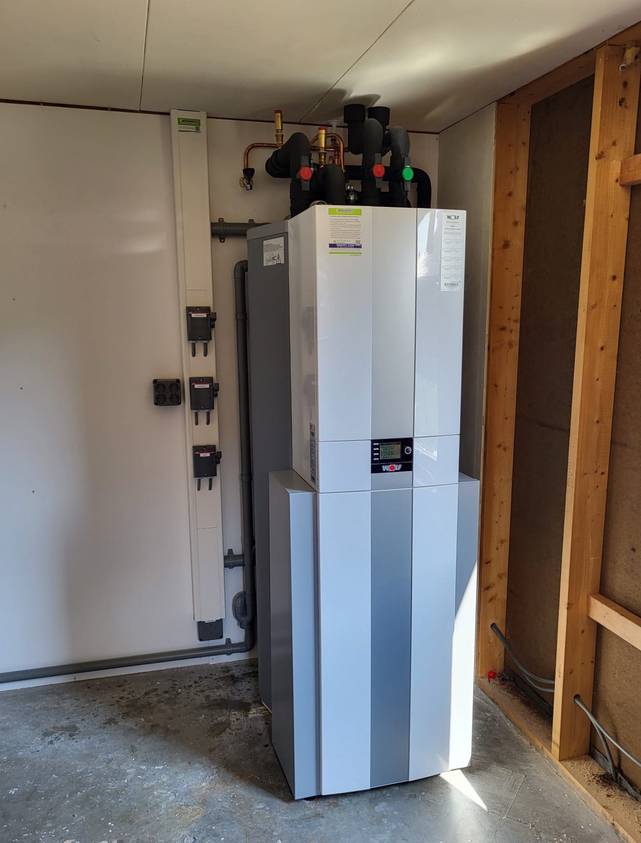 Voor de verwarming en het warme water is gekozen voor een volledig elektrische warmtepomp van Wolf (type: CHA-07 buitenunit en CHC-300-50 binnenunit). In combinatie met de slimme BM-2 thermostaat is de temperatuur in huis eenvoudig te regelen. Dankzij deze installatie is de woning volledig onafhankelijk van aardgas – een belangrijke stap richting fossielvrij wonen.